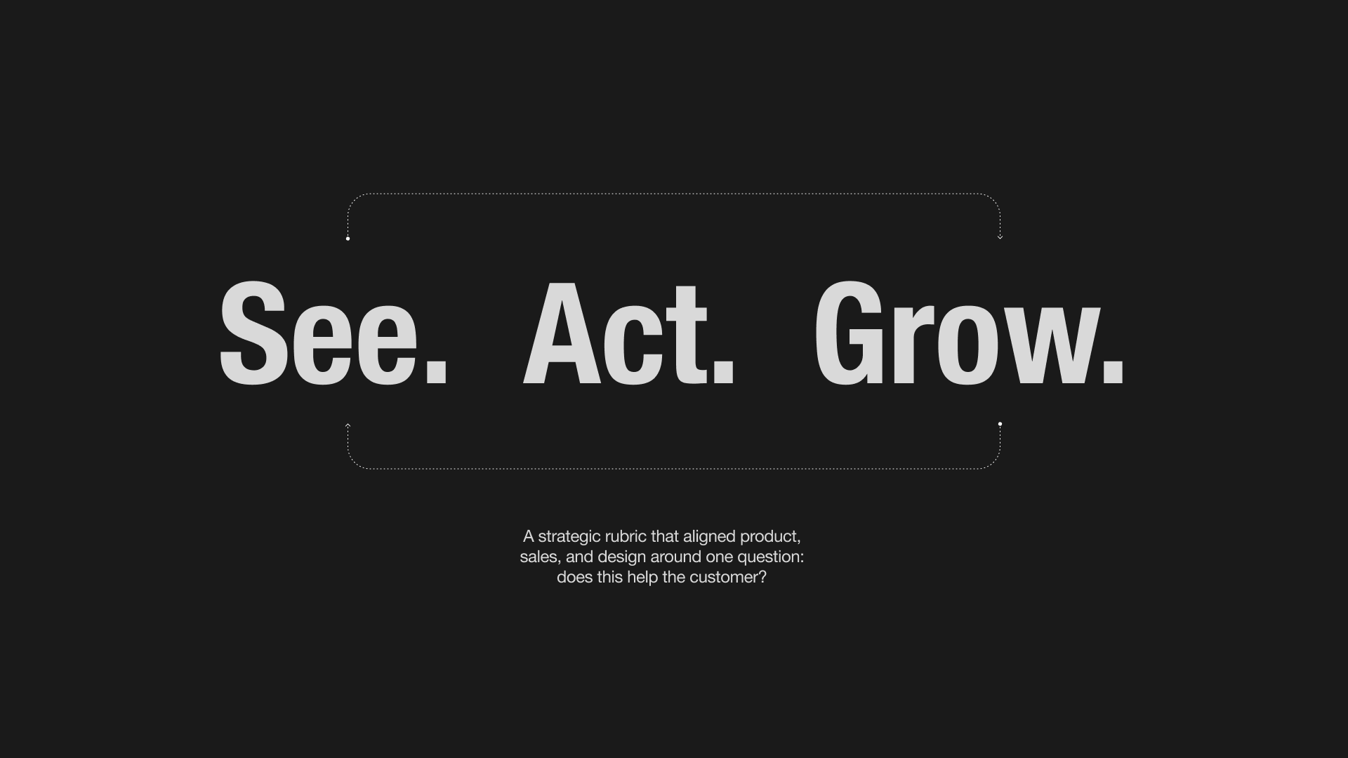 I developed the See, Act, Grow framework as a strategic rubric to align the entire company. It acted as an evaluation tool for our roadmap: if a feature or data point didn't directly help a customer see their problem, act on a solution, or grow their business, it was excluded.